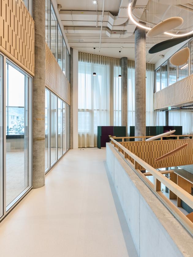 Wir freuen uns, Ihnen das Innenausbauprojekt VIVO in Aesch vorzustellen, das innovative Akustiklösungen mit ästhetischem Design verbindet. Das Projekt umfasst voll ausgebaute Allgemeinzonen sowie Büro-Mietflächen mit grosszügiger Grundrissgestaltung und einem beeindruckenden Luftraum, der sich über drei Geschosse erstreckt.