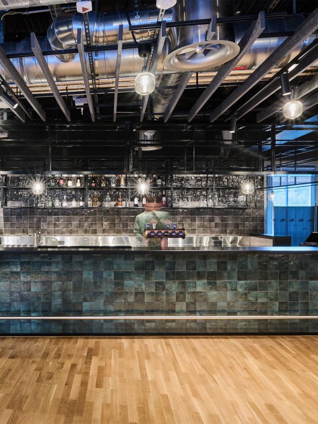 Au troisième étage, le restaurant VIP de 240 places propose une cuisine raffinée et offre la meilleure vue sur l'arène. Une cuisine dédiée à la régénération et un bar élégant créent une ambiance où fonctionnalité, atmosphère et design se fondent en une expérience globale harmonieuse.